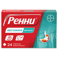 Имеются противопаказания, необходима консультация специалиста ИНСТРУКЦИЯпо медицинскому применению препарата Регистрационный номер: П N012507/02-150709 Торговое название препарата:РЕННИ Группировочное название:Кальция карбонат + Магния карбонат Лекарственная форма:...
