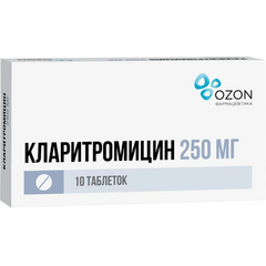 Состав и описание Активное вещество: 1 таблетка содержит: кларитромицин 250 мг или 500 мг. Форма выпуска: Таблетки, покрытые пленочной оболочкой 250 мг или 500 мг. По 10 таблеток в контурную ячейковую упаковку из пленки поливинилхлоридной и фольги алюминиевой печатной лакированной. По...