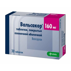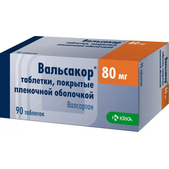 Состав Вальсакор®, 80 мг, таблетки, покрытые пленочной оболочкой Каждая таблетка содержит 80 мг валсартана. Прочими ингредиентами (вспомогательными веществами) являются: лактозы моногидрат, целлюлоза микрокристаллическая, повидон К-25, кроскармеллоза натрия, кремния диоксид коллоидный, магния...