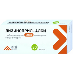 Состав и описание Активное вещество: лизиноприла дигидрат – 21,8 мг, в пересчете на лизиноприл безводный – 20,0 мг; Вспомогательные вещества: лактозы моногидрат (сахар молочный) – 40,1 мг, целлюлоза микрокристаллическая – 87,6 мг, крахмал прежелатинизированный – 44,0 мг, кремния...