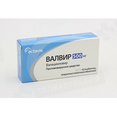 Валвир - инструкция по применению. Торговое название препарата: ВАЛВИР Международное непатентованное название (МНН): валацикловир. Лекарственная форма: таблетки, покрытые пленочной оболочкой. Состав 1 таблетка, покрытая пленочной оболочкой, содержит: активное вещество:...