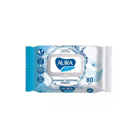 Аура влажная туалетная бумага 80шт Комфорт крышка