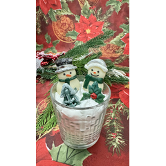 Превратите свой дом в зимнюю сказку с нашей очаровательной свечой! Эта композиция сочетает в себе уют и праздничное настроение — идеальный акцент для новогоднего интерьера. Особенности: Два весёлых снеговика   в стильных шапках и шарфах, словно приветствующих гостей, создают атмосферу...