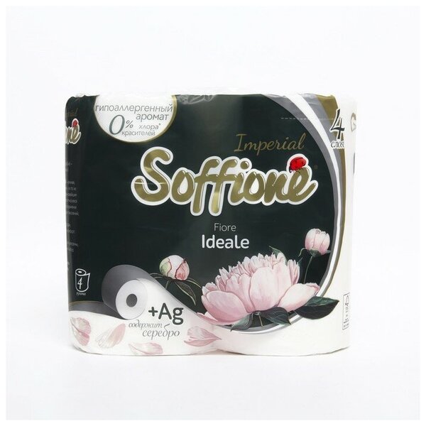 Туалетная бумага Soffione Imperial, с тиснением, перфорацией, 4 слоя, 4 шт.