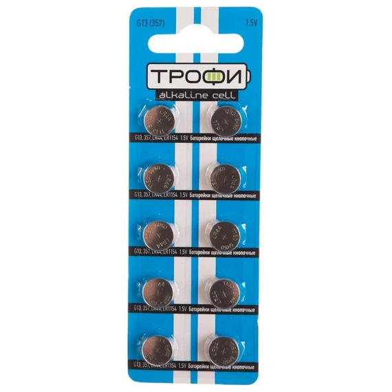 Батарейки Трофи G13 LR1154, LR44 alkaline cell 1/10