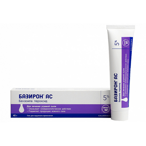 Базирон АС - проявляет противомикробную активность в отношенииPropionibacterium acnesиStaphylococcus epidermidis,являющиеся основной причиной воспалительных явлений.