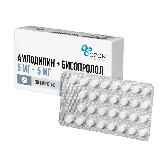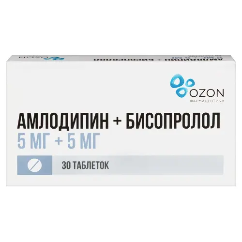 Данные представлены по системно-органным классам в соответствии со словарем MedDRA и со следующей частотой: очень часто (≥ 1/10); часто (от ≥ 1/100 до < 1/10); нечасто (от ≥ 1/1000 до < 1/100); редко (от ≥ 1/10000 до < 1/1000); очень редко (< 1/10000); частота неизвестна (не может быть установлена на основании имеющихся данных).Класс системы органов MedDRA Частота Нежелательные эффекты бисопролола Нежелательные эффекты амлодипинаНарушения со стороны крови и лимфатической системы Очень редко Тромбоцитопения, лейкопенияНарушения со стороны иммунной системы Очень редко Аллергические реакцииНарушения со стороны обмена веществ и питания РедкоПовышение концентрации триглицеридов к кровиОчень редко Гипергликемия (у пациентов сахарным диабетом 2 типа), гипогликемия (у пациентов, получающих инсулин), гипотиреоидное состояние. ГипергликемияНарушения со стороны психики Нечасто Депрессия Лабильность настроения, бессонница, необычные сновидения, повышенная возбудимость, депрессия, тревогаРедко Галлюцинации, ночные кошмары Апатия, ажитация, спутанность сознанияНарушения со стороны нервной системы Часто Головокружение, головная боль Сонливость, головокружение, головная больНечасто Бессонница Синкопе, тремор, дисгевзия, гипестезия, парестезияРедко Обморок МигреньОчень редкоПериферическая нейропатия, атаксия, амнезия, паросмияЧастота неизвестна Экстрапирамидные нарушенияНарушения со стороны органа зрения НечастоРасстройства зрения (диплопия, нарушение аккомодации), ксерофтальмия, боль в глазахРедкоСнижение слезоотделения (следует учитывать при ношении контактных линз)Очень редко КонъюнктивитНарушения со стороны органа слуха и лабиринтные нарушения НечастоШум в ушахРедко Нарушение слухаНарушения со стороны сердца Часто Учащенное сердцебиениеНечасто Нарушение AV проводимости, брадикардия, усугубление течения ХСНРедко Усугубление течения ХСНОчень редко Инфаркт миокарда, желудочковая тахикардия, фибрилляция предсердий, аритмияНарушения со стороны сосудов Часто Ощущение похолодания или онемения в конечностях, выраженное снижение АД Гиперемия кожиНечасто Ортостатическая гипотензия Выраженное снижение АД, ортостатическая гипотензияОчень редко ВаскулитНарушения со стороны дыхательной системы, органов грудной клетки и средостения Часто ОдышкаНечасто Бронхоспазм у пациентов с бронхиальной астмой или обструкцией дыхательных путей в анамнезе Диспноэ, ринит, носовое кровотечениеРедко Аллергический ринитОчень редко КашельНарушения со стороны желудочно-кишечного тракта Часто Тошнота, рвота, диарея, запор Боль в животе, тошнотаНечасто Рвота, диспепсия, запор или диарея, сухость слизистой оболочки полости рта, анорексия, жаждаРедко Повышение аппетитаОчень редко Панкреатит, гастрит, гиперплазия десенНарушения со стороны печени и желчевыводящих путей Редко ГепатитОчень редко Гепатит, желтуха, холестазНарушения со стороны кожи и подкожных тканей Нечасто Кожная сыпь, пурпура, кожный зуд, ксеродермия, крапивница, экзантемаРедко Реакции повышенной чувствительности, такие как кожный зуд, кожная сыпь, гиперемия кожных покровов Эксфолиативный дерматитОчень редкоАлопеция. Бета-адреноблокаторы могут способствовать обострению течения псориаза или вызывать псориазоподобную сыпьМультиформная экссудативная эритема, ангионевротический отек, ур
