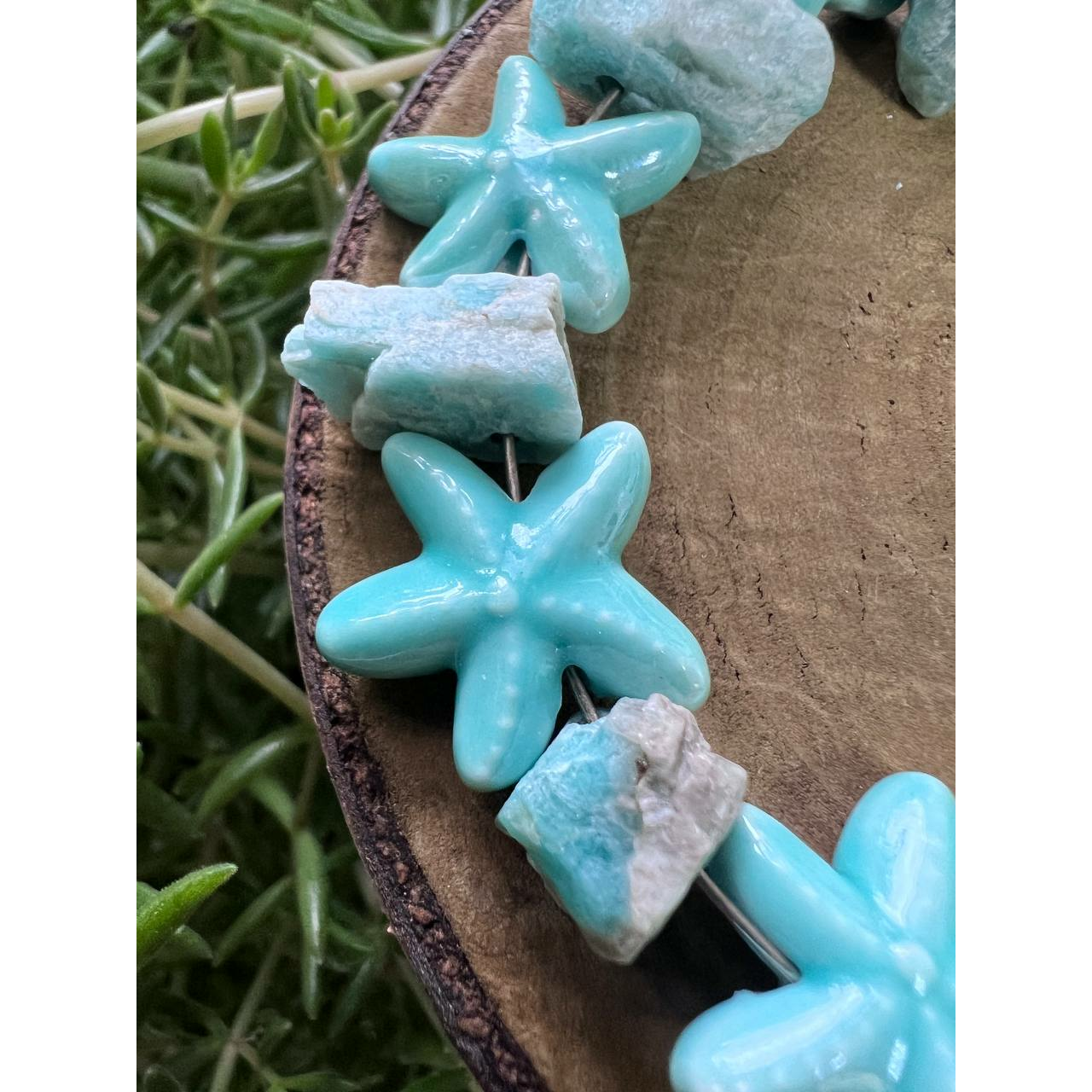 Браслет на Мемори проволоке. Амазонит, морские звезды-керамика.