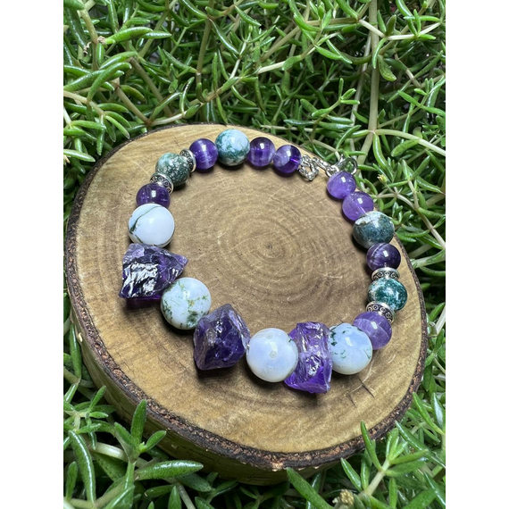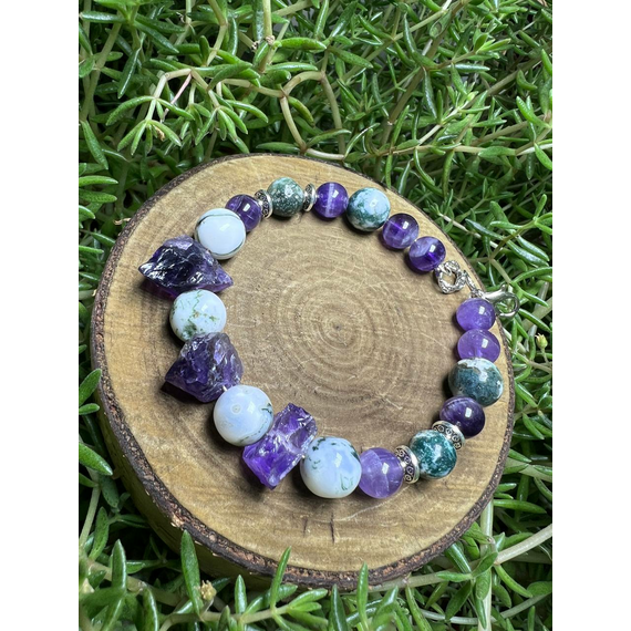 Аметист – это камень, олицетворяющий гармонию, спокойствие и духовное пробуждение. Он символизирует мудрость, ясность мысли и интуицию, считается мощным оберегом от негативной энергии, стресса и искушений. Аметист также обладает лечебными свойствами: помогает при стрессах, бессоннице, головных болях, укрепляет иммунитет и нормализует работу нервной системы.