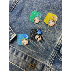Эпоксидная смола, стразовая и металлическая цепи. Застежка-булавка.