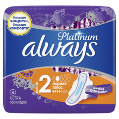 Олвейз прокладки Ультра Платинум Норм плюс Single 8шт.(16шт.)