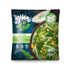 Брокколи, фасоль стручковая, кукуруза, горошек зеленый, лук репчатый, горох стручковый, бамбук, соус (сливочное масло, растительное масло, вода, соль, сыр, приправы и специи).