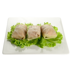 Состав теста: мука пшеничная высший сорт, меланж (смесь яичных белков и желтков), вода питьевая. Состав фарша: говядина, свинина, лук репчатый свежий, чеснок свежий, соль пищевая, перец черный молотый.