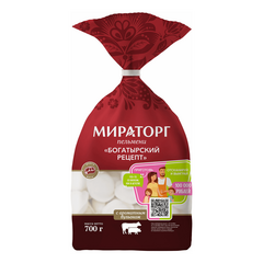 Фарш: свинина, говядина, вода питьевая, бульон говяжий, лук репчатый, соль пищевая, регуляторы кислотности (E450, E451, E262ii), специи (перец, чеснок, лук), антиокислители (Е300, Е301), агент антислеживающий – Е551). Тесто: мука пшеничная высшего сорта, вода питьевая, яичный меланж, соль, масло...