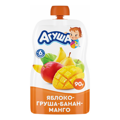 Агуша Я САМ!Пюре фруктовое 90г Яблоко/Груша/Банан/Манго 1/10