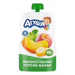 Агуша Я САМ!Пюре фруктовое 90г Яблоко/Тыква/Персик/Банан 1/10