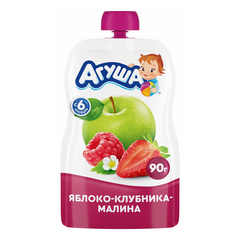 Агуша Я САМ!Пюре фруктовое 90г Яблоко/Клубника/Малина 1/10