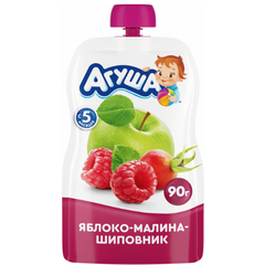 Агуша Я САМ!Пюре фруктовое 90г Яблоко/Малина/Шиповник 1/10