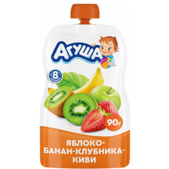 Агуша Я САМ!Пюре фруктовое 90г Яблоко/Бан/Клубника/Киви 1/10