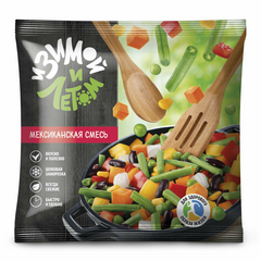 Фасоль стручковая 20%, перец микс 20%, фасоль бобы красные 10%, морковь кубик 20%, кукуруза зерно 10%, горох зеленый 10%, лук кубик 10%.