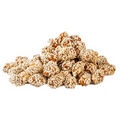 сахар, мука пшеничная общего назначения М 55-23, продукты яичные, жир кондитерский (рафинированное дезодорированное растительное масло, антиокислитель - альфа-Токоферол), патока, масло кокосовое, сухое обезжиренное молоко, подсластитель - сорбитовый сироп, влагоудерживающий агент – глицерин,...
