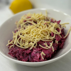 Состав: Свекла отварная; Сыр; Майонез; Чеснок свежий; Сахар-песок; Соль