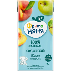 ФрутоНяня сок 200мл Яблоко/Персик н/о 1/18