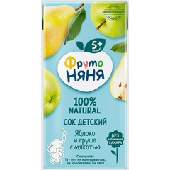 ФрутоНяня сок 200мл Яблоко/Груша с мяк. 1/18