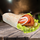Куриная котлета, соленые огурчики, салат, помидор и лук с ароматным чесночным соусом, завернутые в пшеничную тортилью
