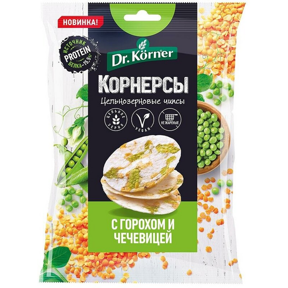 Цельнозерновые чипсы от Dr.Korner с растительным протеином - вкусный и полезный аналог обычным чипсам. Данный продукт подойдет спортсменам и людям, следящим за своей формой и здоровьем. Чипсы не подвергались жарке - подходят для вегетарианцев и веганов. Не содержат глютена.