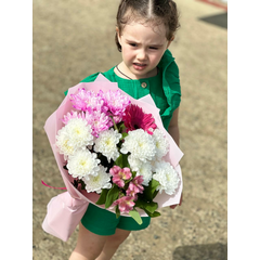 5 роз одноголовых,Эустома 4шт, роза кустовая 3шт, диантус 6шт, эвкалипт, упаковка