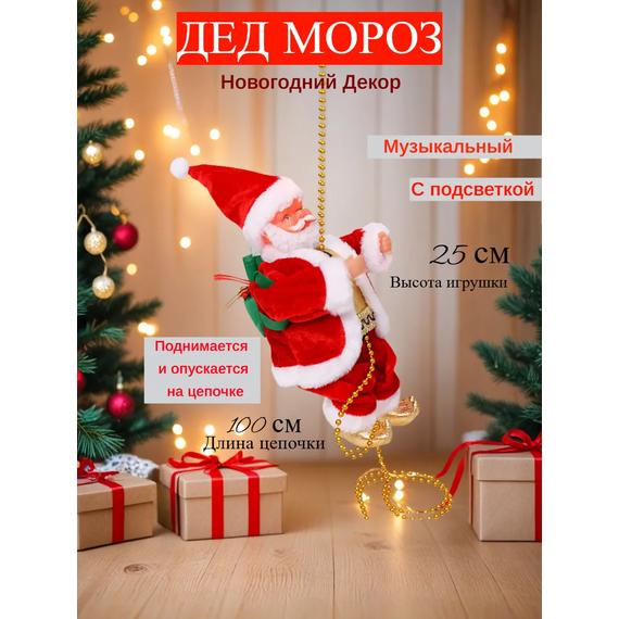 Погрузитесь в волшебный праздник с нашим музыкальным Санта Клаусом на цепочке с подсветкой!
