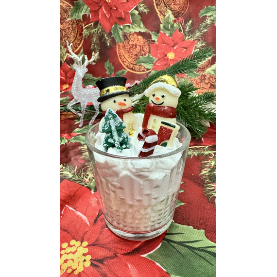 Превратите свой дом в сказку с нашей очаровательной свечой! Эта композиция не просто источник мягкого света, а настоящий миниатюрный зимний мир в стеклянном стакане.