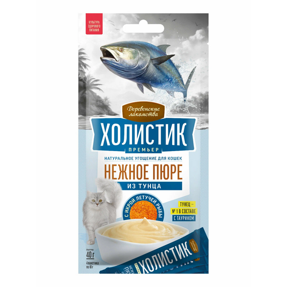 Деревенские лакомства Холистик Премьер Нежное пюре Утка с икрой летуч. рыбы д/кошек, 4х10г