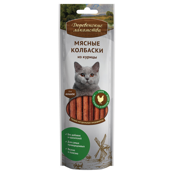 деревенские Лакомства: колбаски мясные из курицы для кошек 45г