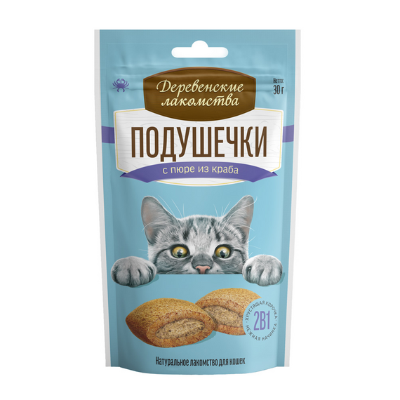 Деревенские Лакомства: подушечки с пюре из краба д/кошек 30г