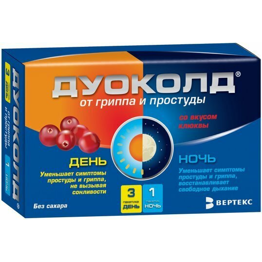 Взрослым и детям старше 12 лет принимать в дневное время суток по 1 пакетику «День» через каждые 4-6 часов, но не более 3-х раз в сутки, и по 1 пакетику «Ночь» вечером перед сном (не более 1 раза в сутки) не более 3 дней. Если в течение 3-х дней после начала приема препарата не наблюдается облегчения симптомов, необходимо обратиться к врачу.