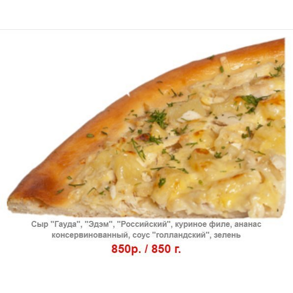 Сыр "Гауда", "Эдэм", "Российский", куриное филе, ананас консервинованный, соус "голландский", зелень