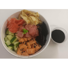 Лосось с/м,тунец с/м,рис,огурец,японский омлет,имбирь,нори,тобико,кунжут чёрный