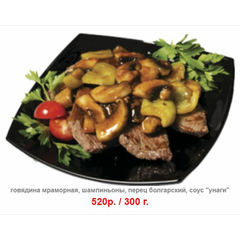 говядина мраморная, шампиньоны, перец болгарский, соус "унаги"