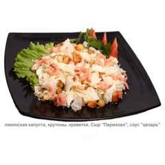 Пекинская капуста, крутоны, креветки, Сыр "Пармезан", соус "цезарь". Вес 150/50 гр.