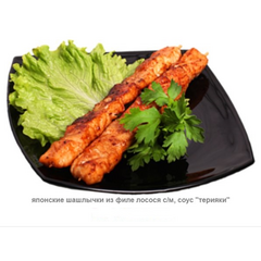 Японские шашлычки из филе лосося с/м, соус "терияки". Вес 100/30 гр.