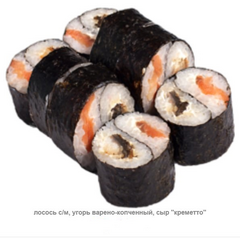 Лосось с/м, угорь варено-копченный, сыр "креметто". Вес 140 гр.