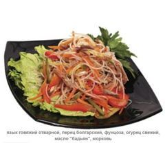 язык говяжий отварной, перец болгарский, фунцоза, огурец свежий, масло "бадьян", морковь
