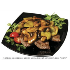 Говядина мраморная, шампиньоны, перец болгарский, соус "унаги". Вес 300 гр.