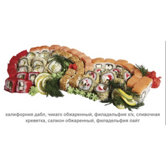 калифорния дабл, чикаго обжаренный, филадельфия х/к, сливочная креветка, салмон обжаренный, филадельфия лайт. Вес 1140 гр.