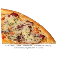 Сыр "Гауда", "Эдэм", "Российский", говядина в/к, помидор, шампиньоны, соус томатный, зелень Вес 700 гр.