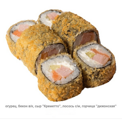 Огурец, бекон в/к, сыр "Креметто", лосось с/м, горчица "дижонская". Вес 200 гр.
