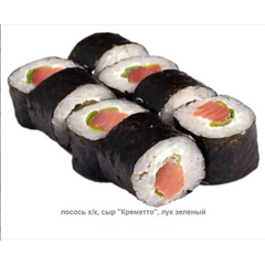 Лосось х/к, сыр "Креметто", лук зеленый. Вес 130 гр.