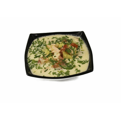 Лосось с/м, картофель, помидор, лук репчатый, петрушка, сливки, специи. Вес 320 гр.